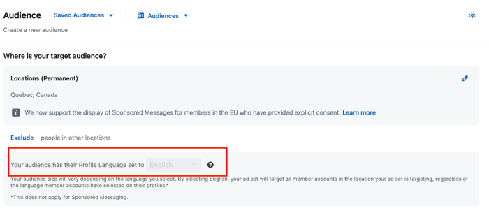 La gestion du bilinguisme : Beaucoup de professionnels francophones au Québec ont leur interface LinkedIn en anglais. Si vous avez configuré votre campagne en anglais, assurez-vous d'avoir des publicités en français et en anglais au sein de vos campagnes, ou encore mieux, séparez-les pour mieux analyser les résultats.