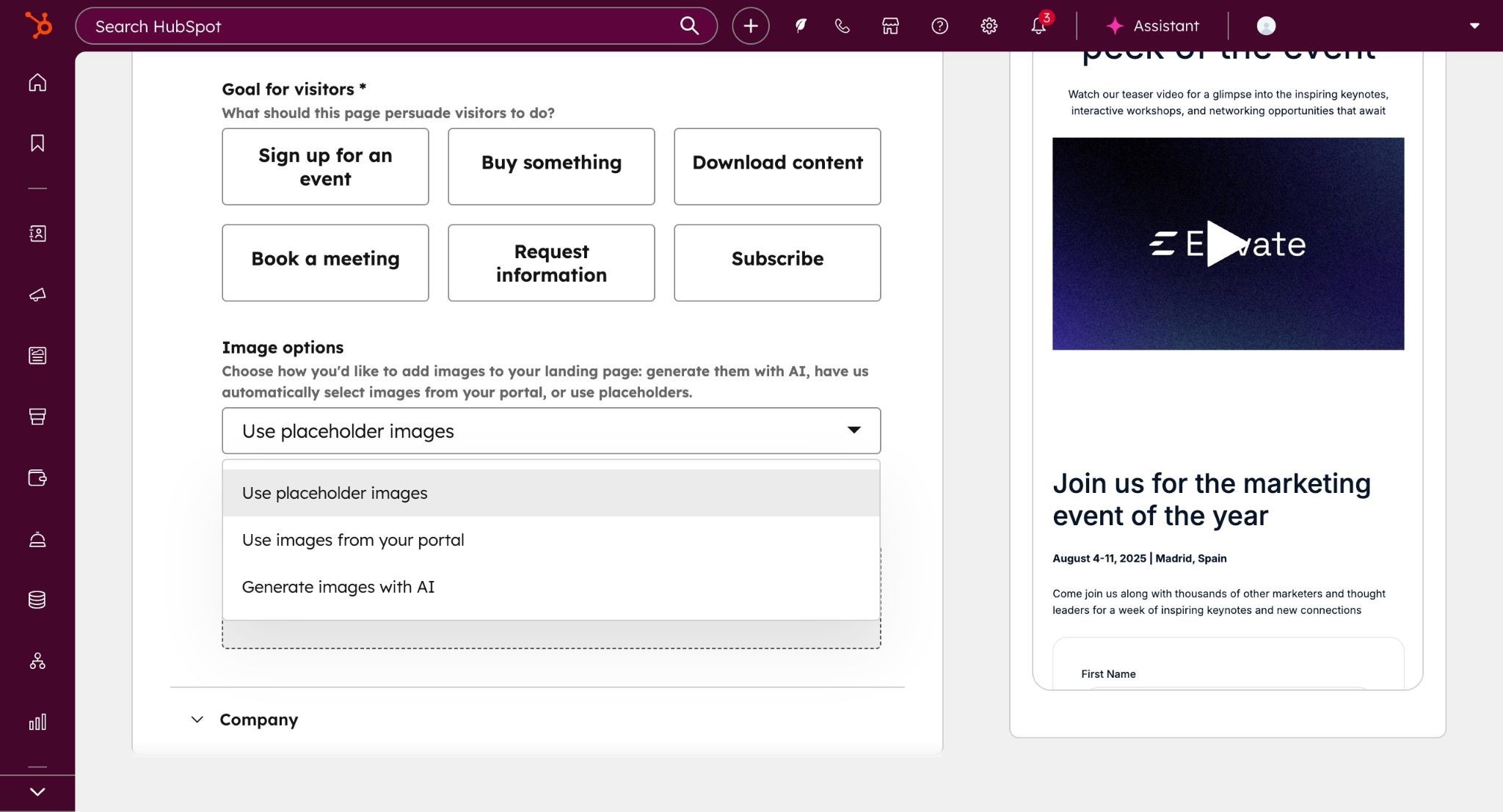 HubSpot permet de générer des images directement dans l'éditeur de landing pages, en s'appuyant sur vos contenus et votre charte graphique.